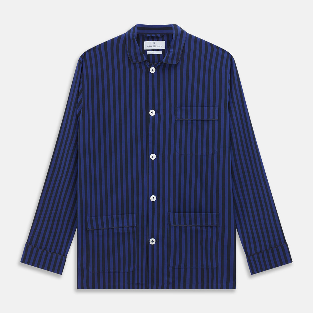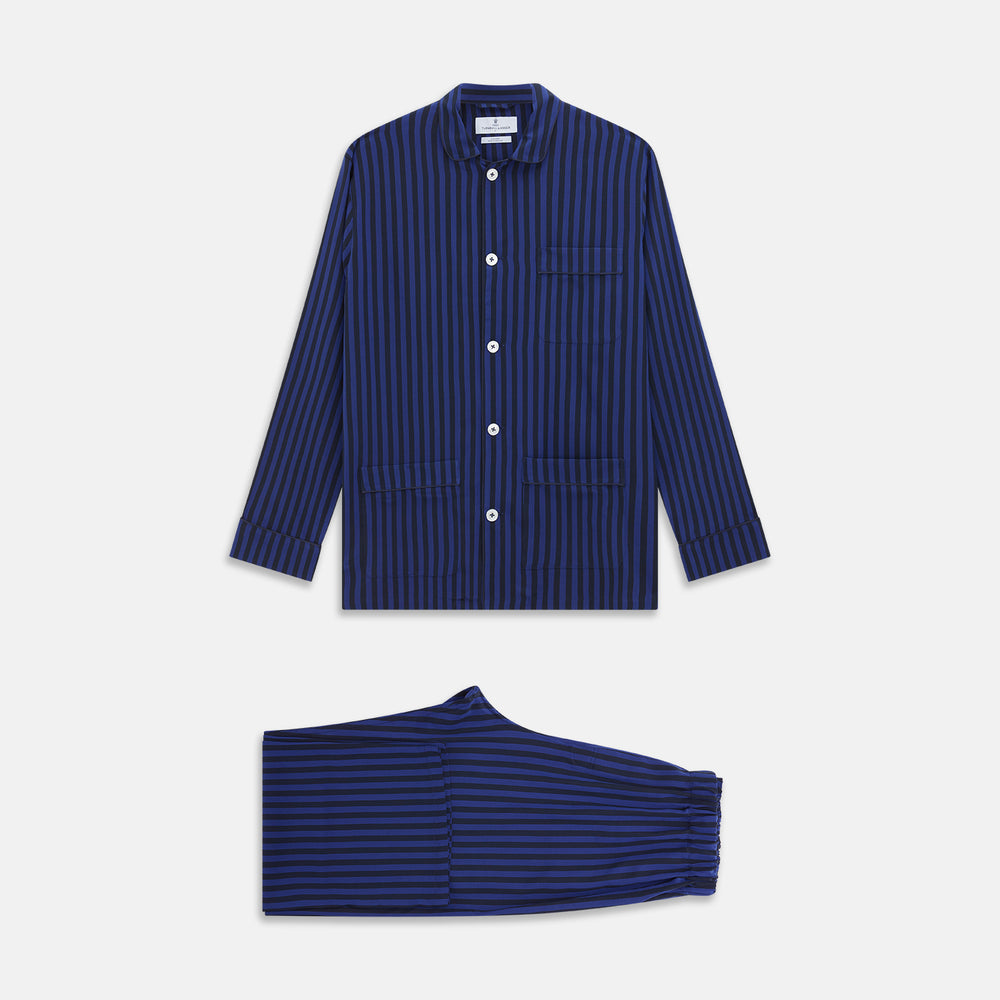 Blue and Navy Candy Stripe Silk Hyde Pyjamas Set