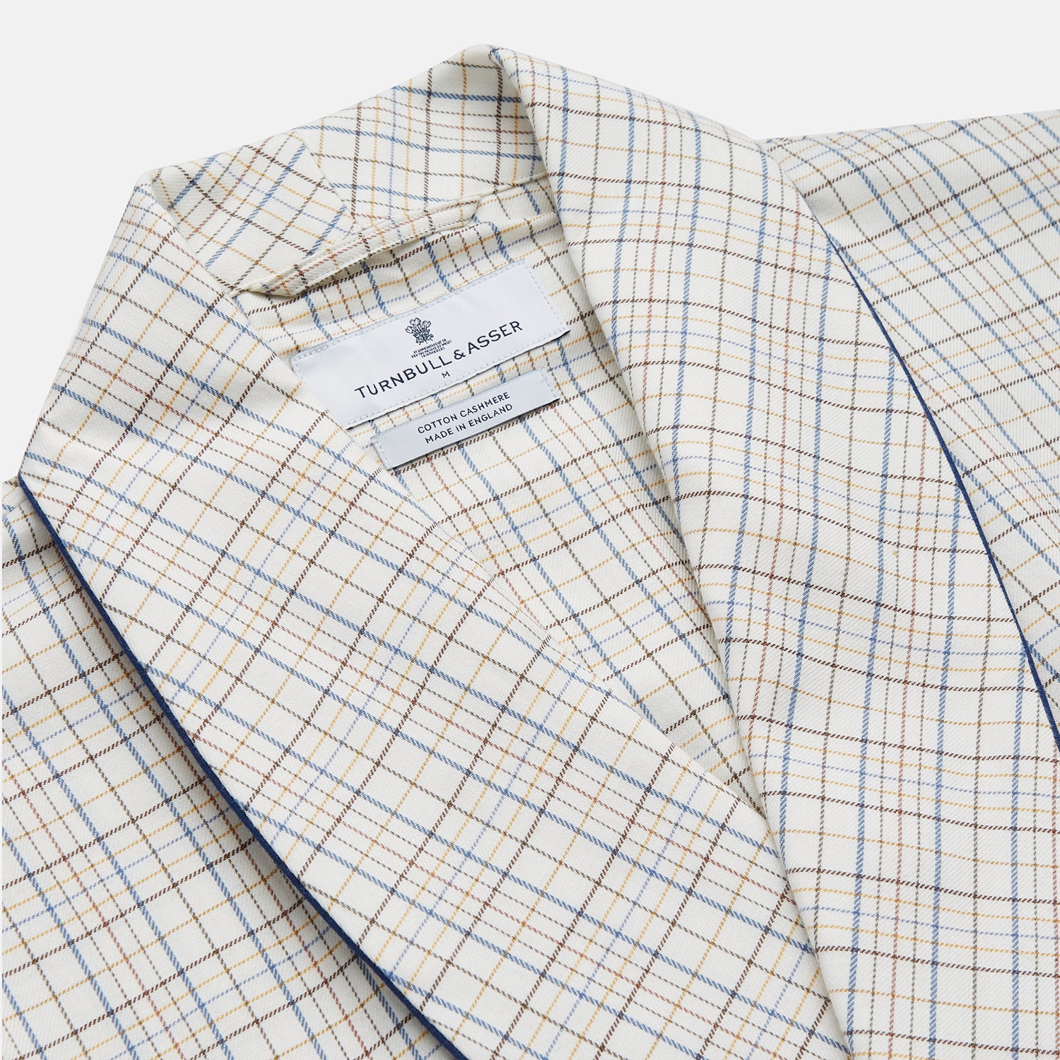Relaxed autumn mornings call for breathable but warming dressing gowns; this traditional brown check gown is made in England from Italian cotton-cashmere fabric with navy piping. The matching travel bag means you can also take it with you on weekends away for a comforting reminder of home.
