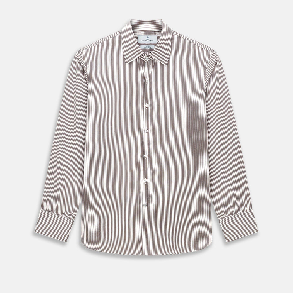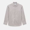 Embodying the essence of Mr. Turnbull's devotion to practicality and elegance combined, this burgundy halo stripe westminster shirt is the epitome of British craftsmanship. Crafted with a tailored silhouette for a refined yet sophisticated aesthetic, it is finished with a new sophisticated and formal Turnbull collar and 3-button cuffs. The closed collar feature enhances its sharpness, making it an emblematic new classic that elevates any ensemble.