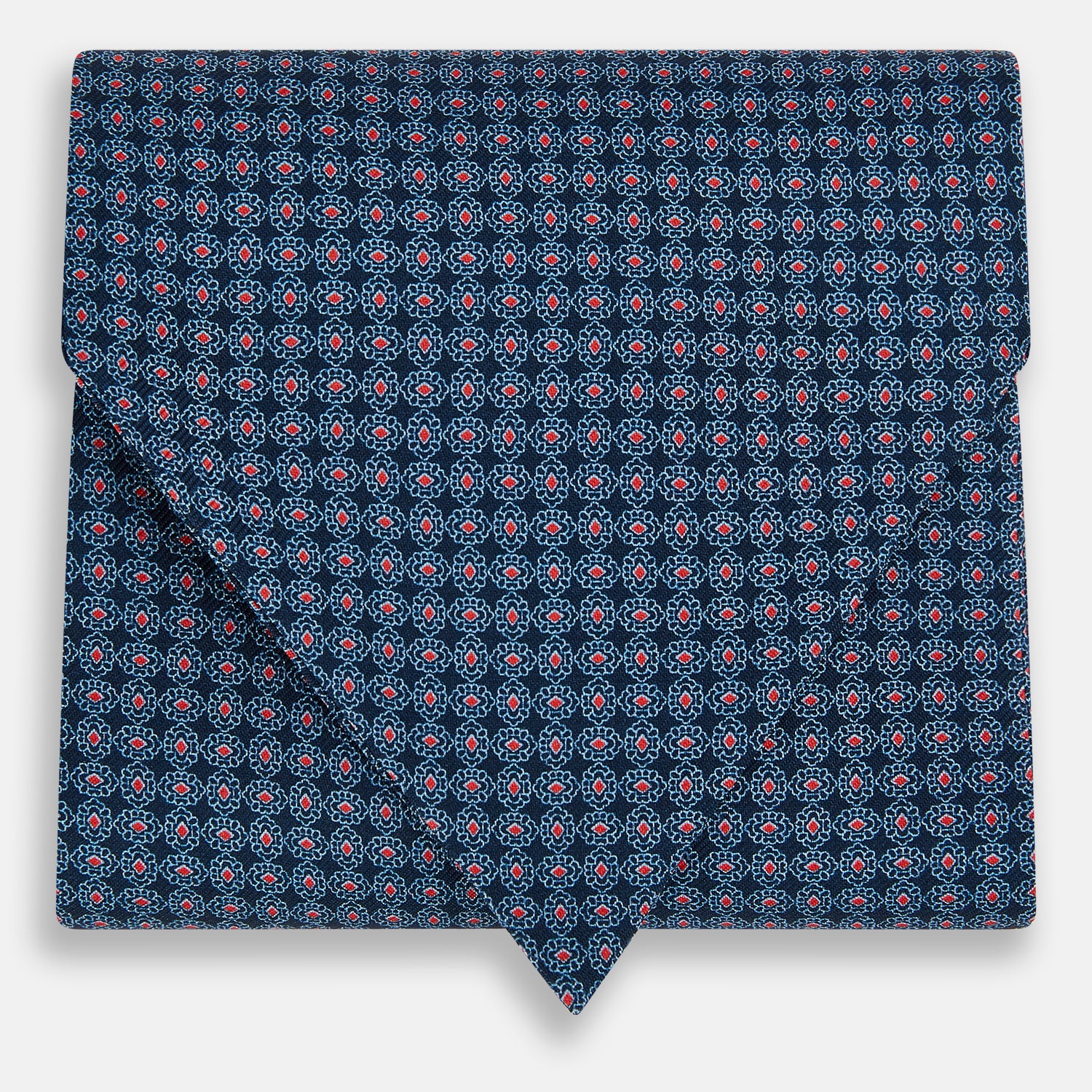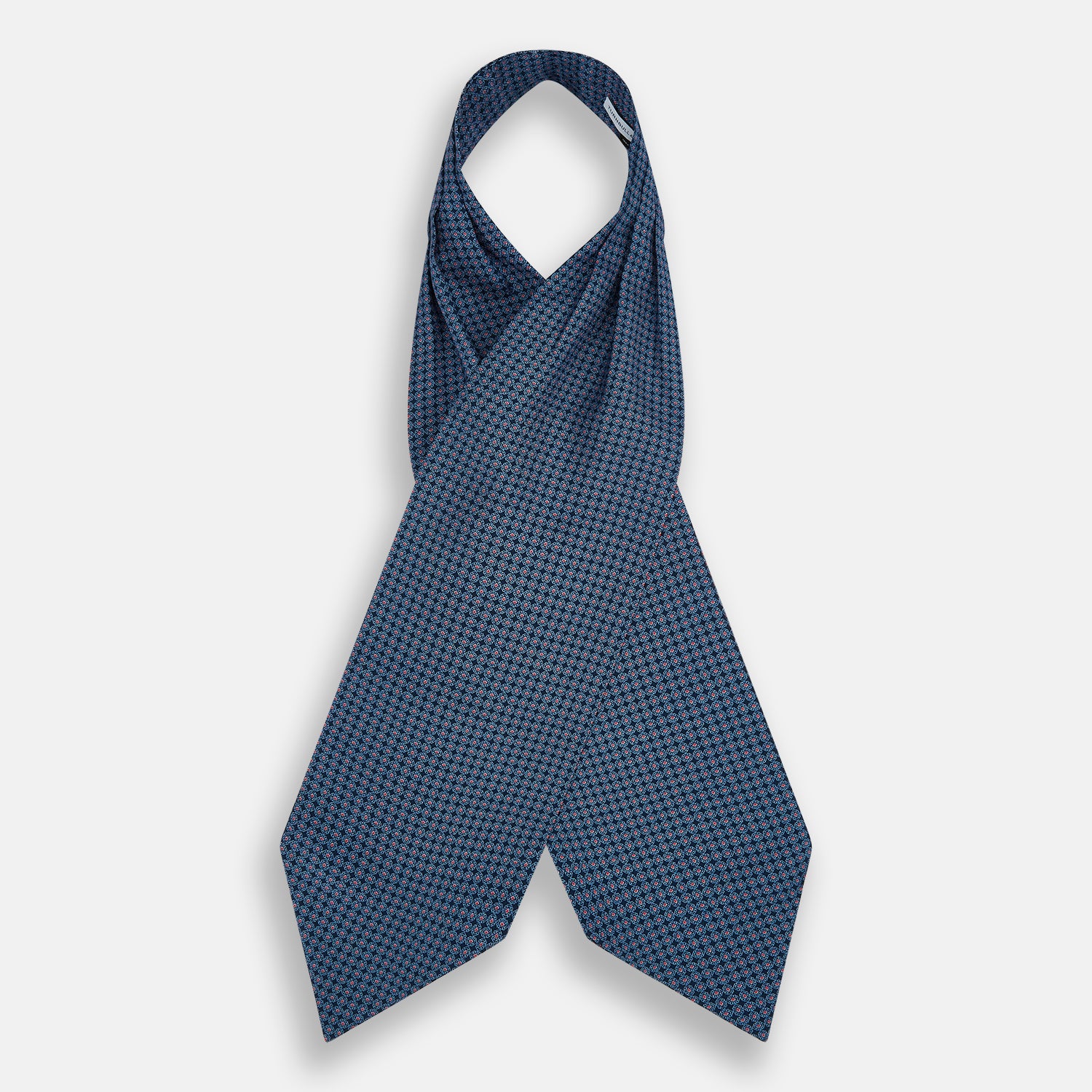 The perfect touch of sartorial flair to complete any dapper outfit, this navy and red rosette silk cravat is sure to make you stand out. Whether you're dressing for a formal event or elevating your daily attire, we recommend wearing this open-collared with a crisp shirt.