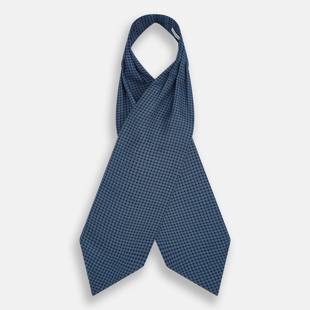 Handmade in our Gloucester workrooms by skilled artisans, each of our cravats is designed in-house. The silk is woven in Suffolk using the finest of centuries-old techniques. Our cravats are pleated and measure 6.6cm in the middle and 13cm at its widest point.