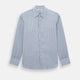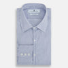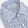 Embodying the essence of Mr. Turnbull's devotion to practicality and elegance combined, this navy and white stripe westminster shirt is the epitome of British craftsmanship. Crafted with a tailored silhouette for a refined yet sophisticated aesthetic, it is finished with a new sophisticated and formal Turnbull collar and 3-button cuffs. The closed collar feature enhances its sharpness, making it an emblematic new classic that elevates any ensemble.