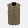 Elevate your wardrobe with our Olive Linen Twill Waistcoat. Expertly crafted from an exclusive Irish linen, this waistcoat offers sophisticated style and comfort. Its deep olive hue, presented in a distinctive twill weave, offers a refined texture and versatile appeal. Designed with Turnbull & Asser's meticulous detail, it boasts a classic V-neck, five-button front, and side adjusters at the back for a refined, customisable fit. Practicality is assured with two discreetly zippered side pockets and a chest patch pocket.
