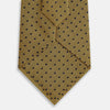 Our ties are handmade at our English workrooms. They are designed in-house and woven at a centuries-old English silk mill. Each tie is made with a self-tipped blade and delicate slip-stitching along its entire length, which allows it to sit comfortably on the neck and recover after each day’s wear. Our ties measure 9.5cms wide at their broadest point.