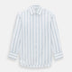 The building block of a modern gentleman's wardrobe, our Mayfair shirt is classically tailored from pure Italian cotton — smooth, breathable and lightweight — and features our unmistakably elegant T&A collar and 3-button cuffs. The charming steel grey track stripe pattern pairs perfectly with a vibrant tie, creating an artful contrast.