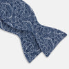A sophisticated patterned bow tie is an essential addition to your wardrobe. This pale blue paisley iteration is an enduring accessory for smarter attires. Complete it with your favourite crisp shirt for a look that commands attention.