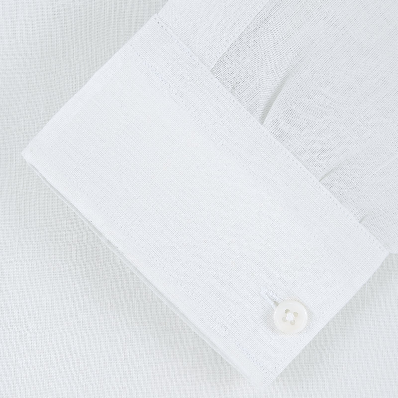 Weekend Fit Cream Linen Shirt with Stand Collar and 1-Button Cuff