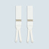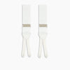 A classic piece of apparel for any traditional gentleman, these white moire braces are made in England. The fully adjustable design is completed with leather ends and comes with six clear trouser buttons. A discreet matching elasticated back segment ensures a comfortable fit.