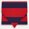 A distinguished cravat, featuring bold red stripes against a classic navy backdrop, woven in fine silk. This handsome accessory offers a touch of traditional British style and a refined way to elevate your smart attire for events such as weddings or other occasions where a touch of classic elegance is desired.