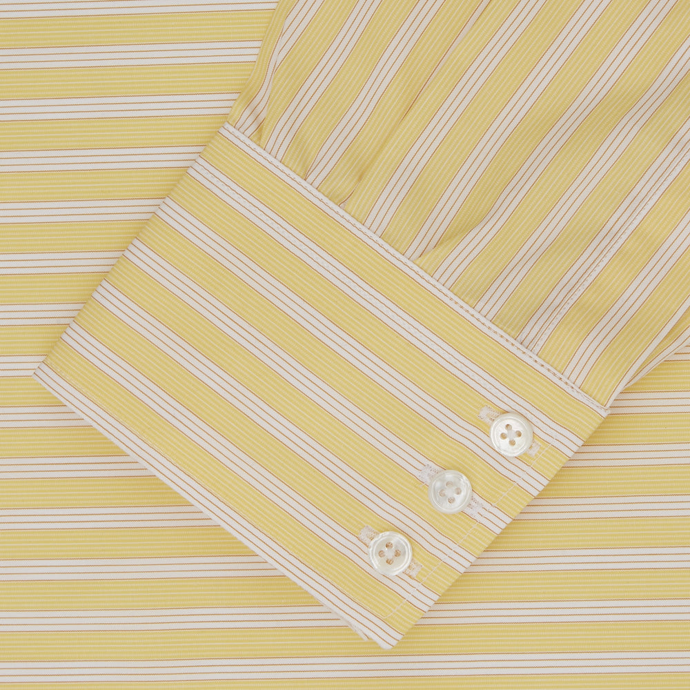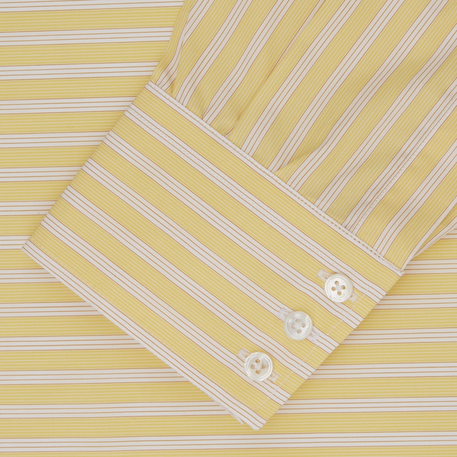 Yellow and White Bold Stripe Shirt with T&A Collar and 3-Button Cuffs